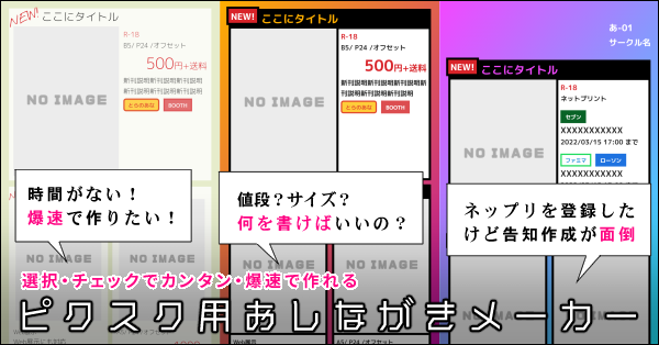 それで原稿を印刷所に入稿したり、イベント後に商品を発送するといったタスクはありませんでした。