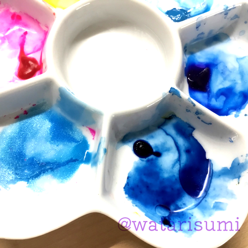2023/03/12 Sun 画材 パレットの絵具にカビ発生(やってしまった…)→丸洗いした。 この機会に梅皿をパレットとして使ってみることに。 透明水彩講座のキットに付いてきて、置きっぱなしなの勿体ないな~とずっと思っていたのでちょうど良かったかもしれない。 1枚パレットと比べて混色スペースを必要なだけ増やしていけるのが便利。 #画材 #透明水彩